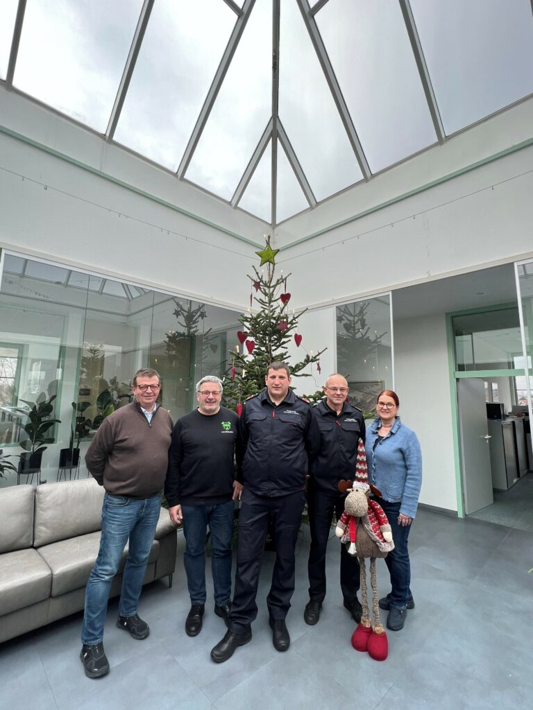 Unsere diesjährige Weihnachtsspende geht an die Freiwillige Feuerwehr Weidhausen. Wir unterstützen mit unserer Spende die Anschaffung eines mobilen Defibrators. Bild von rechts nach links: Sabine Faber (GF), Andrè Dreilich (Kommandant), Patrick Baderschneider (stellv. Kommandant), Thomas Bauer (1. Vorsitzender) und Axel Faber (GF) …